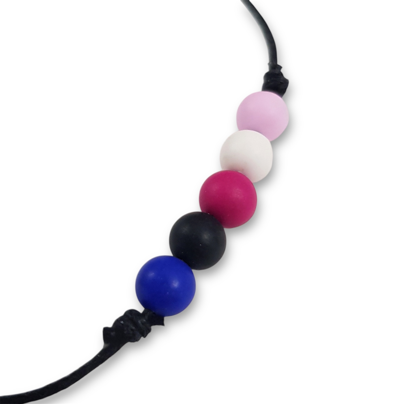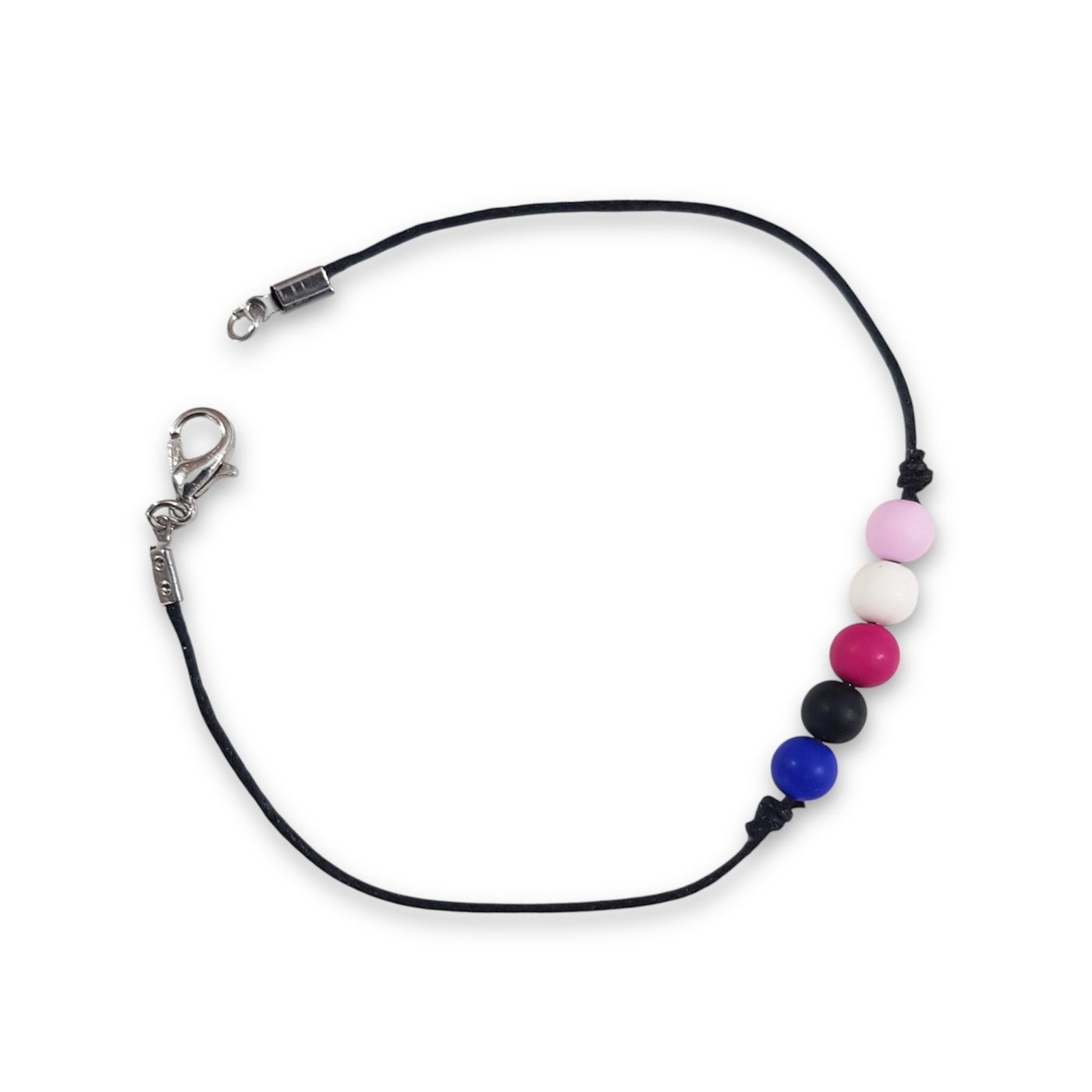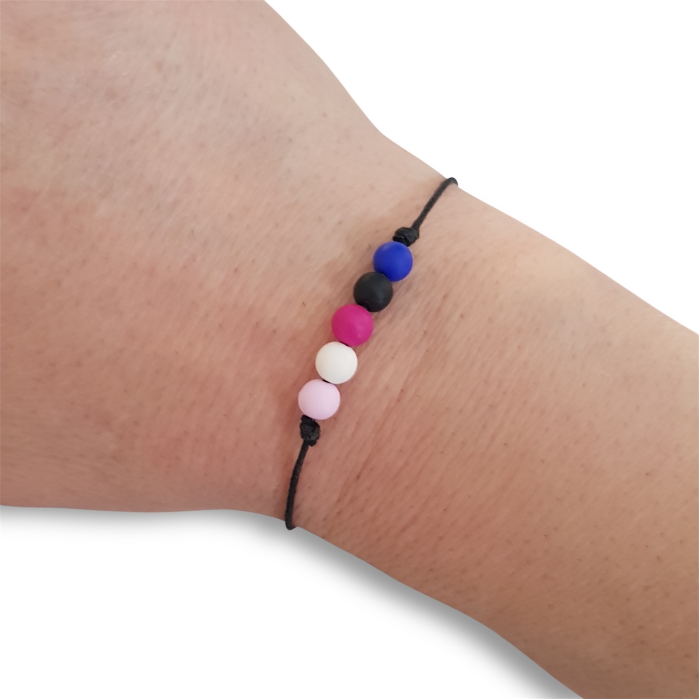 Genderfluid pride flag bracelet in the genderfluid flag colours of pink, white, purple, black, and blue.