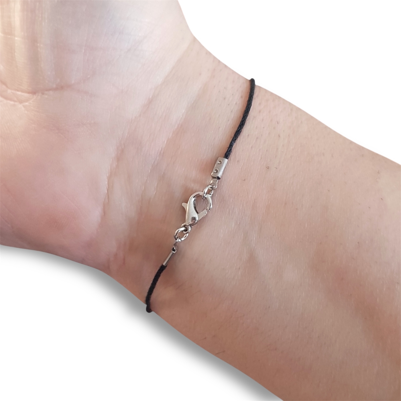 The beads are approximately 6mm in diameter and are handmade from polymer clay. The bracelet is made from 1mm waxed cotton and closure is via a lobster clasp.