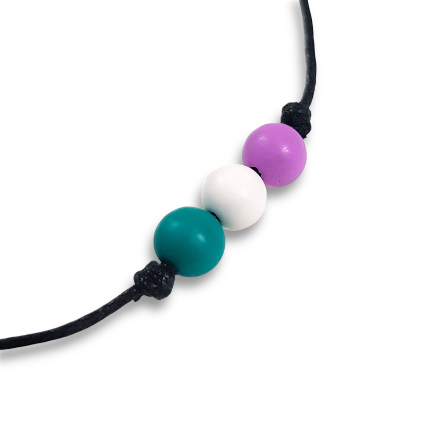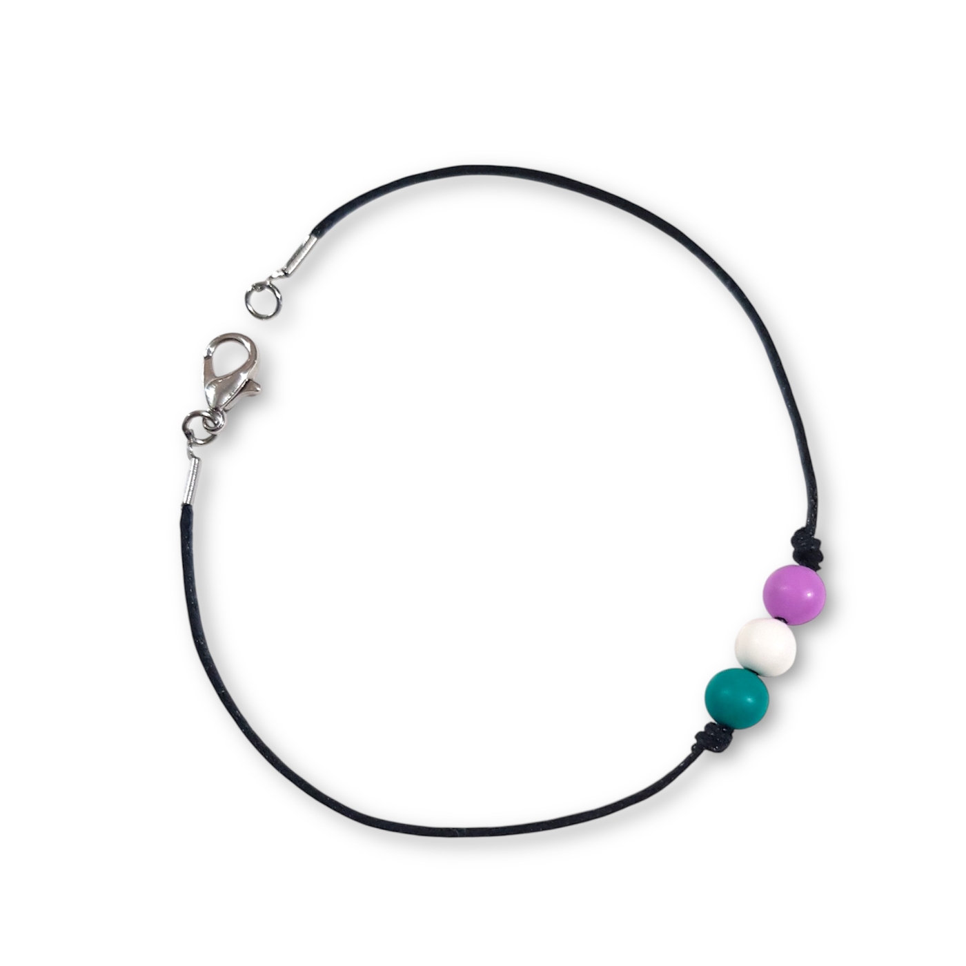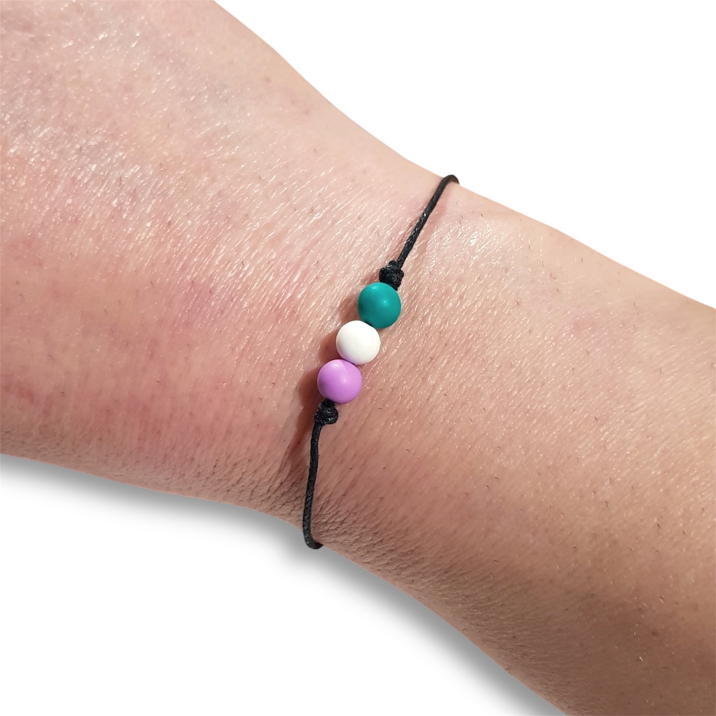 Genderqueer bracelet in the genderqueer pride flag colours of lavender, white, and green.