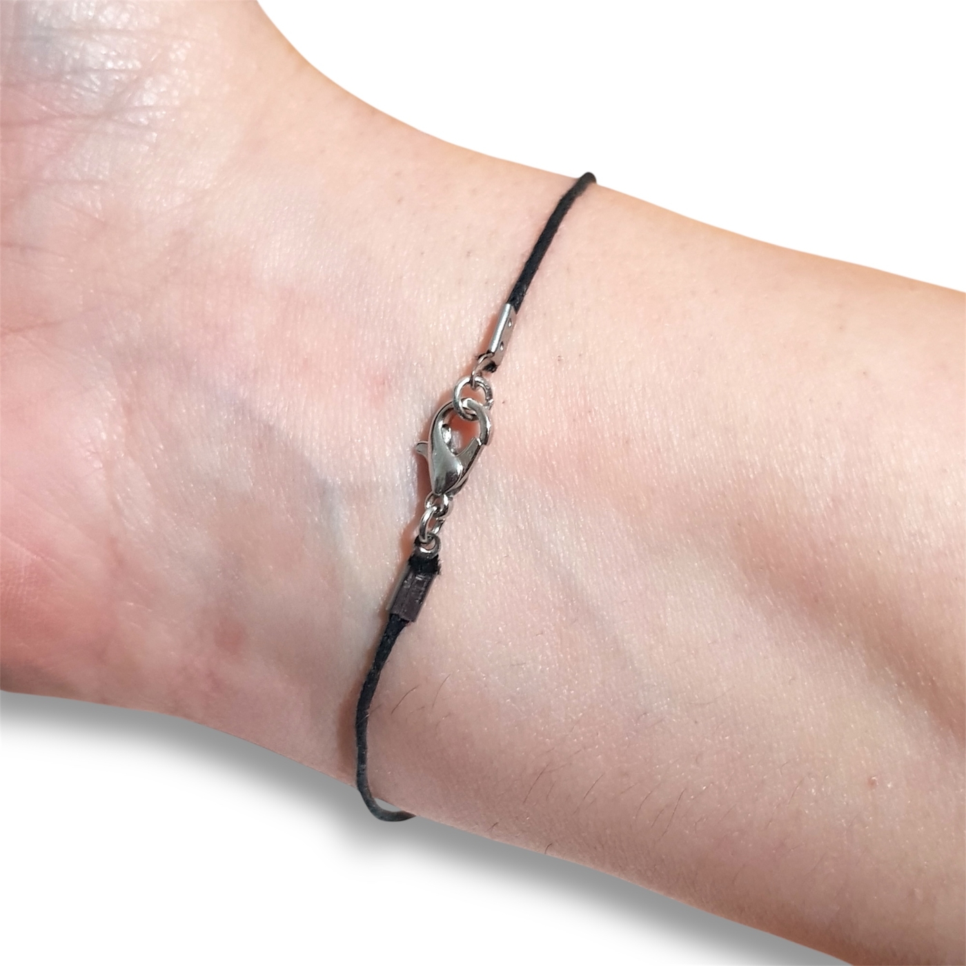 The beads are approximately 8mm in diameter and are handmade from polymer clay. The bracelet is made from 1mm waxed cotton, and closure is via a lobster clasp.