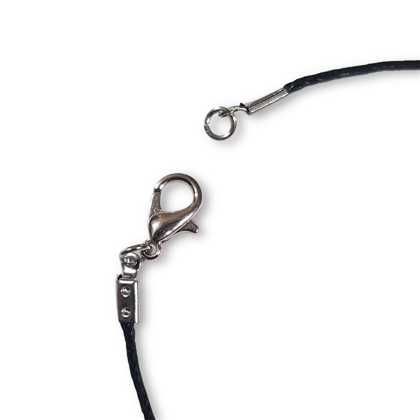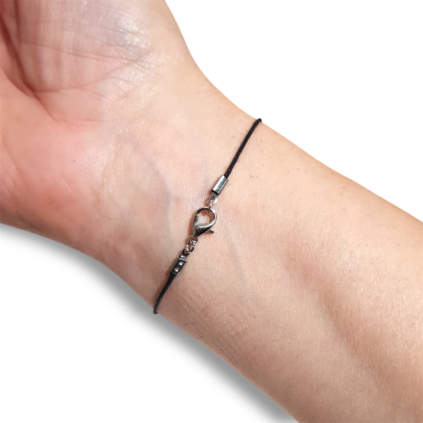 The beads are approximately 6mm in diameter and are handmade from polymer clay. The bracelet is made from 1mm waxed cotton, and closure is via a lobster clasp.