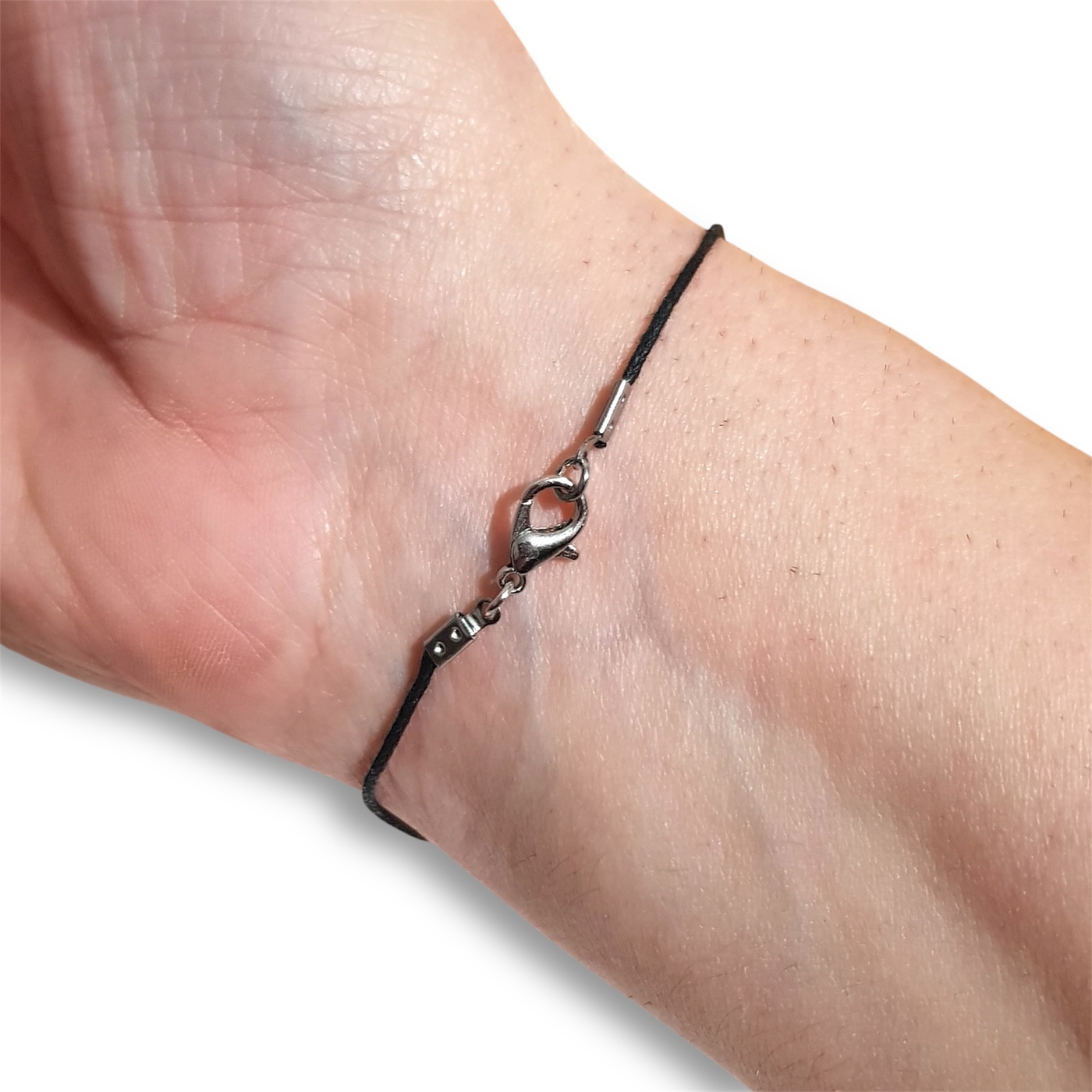 The beads are approximately 8mm in diameter and are handmade from polymer clay. The bracelet is made from 1mm waxed cotton, and closure is via a lobster clasp.