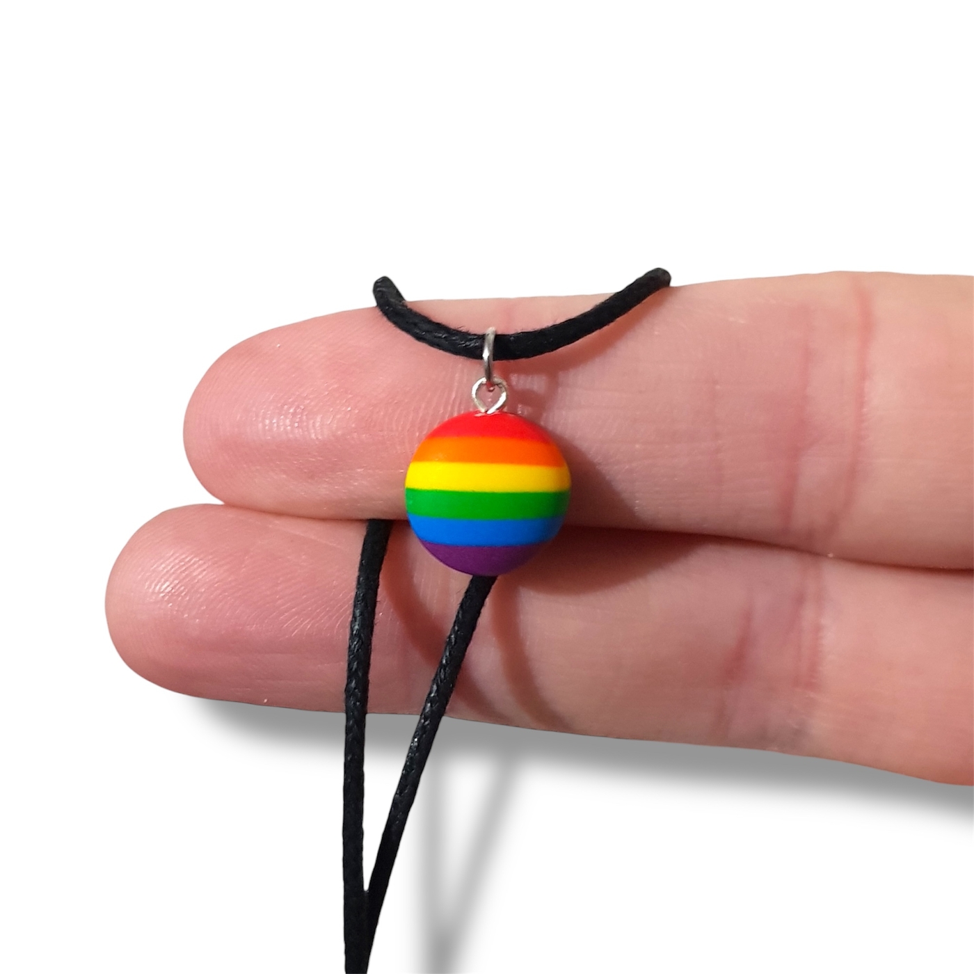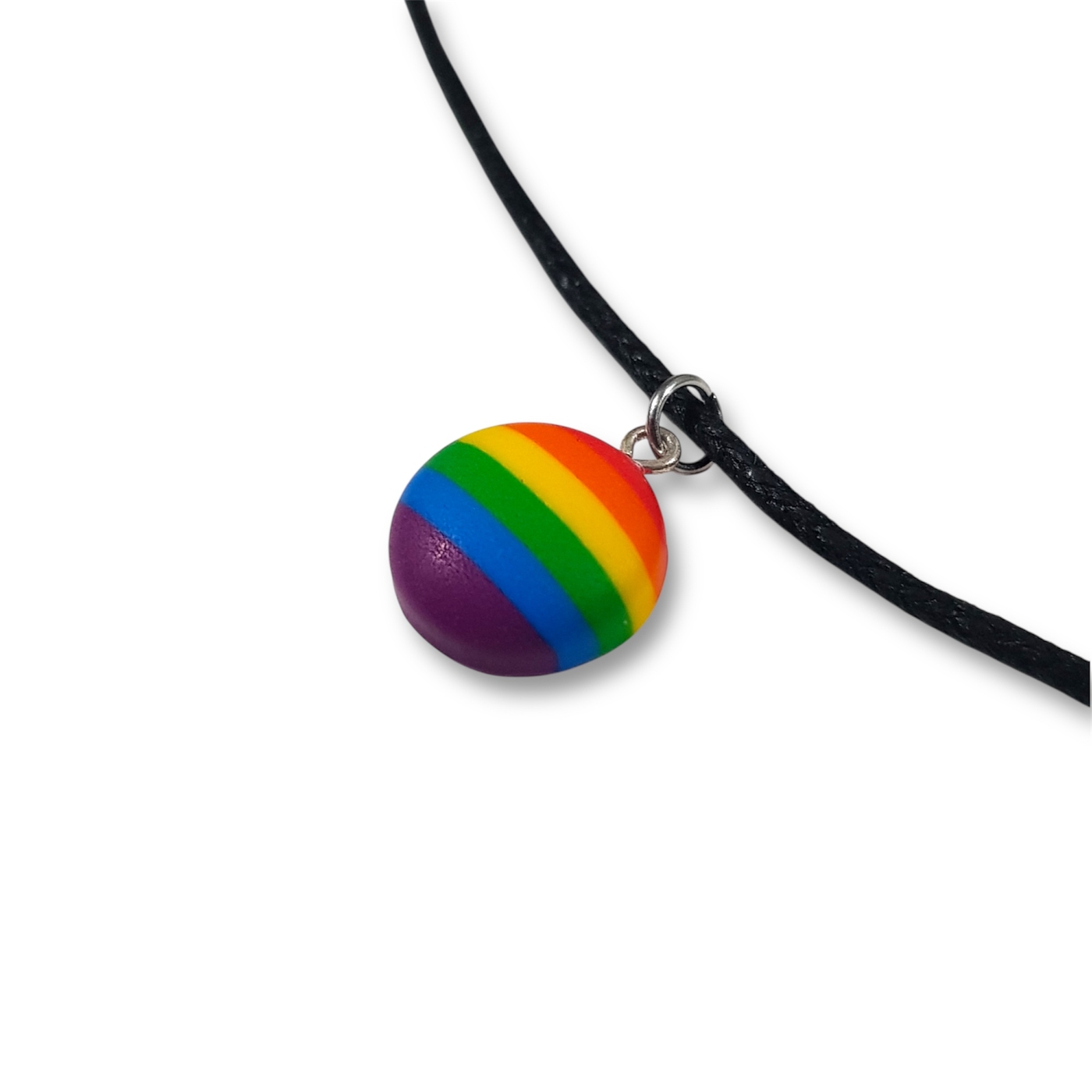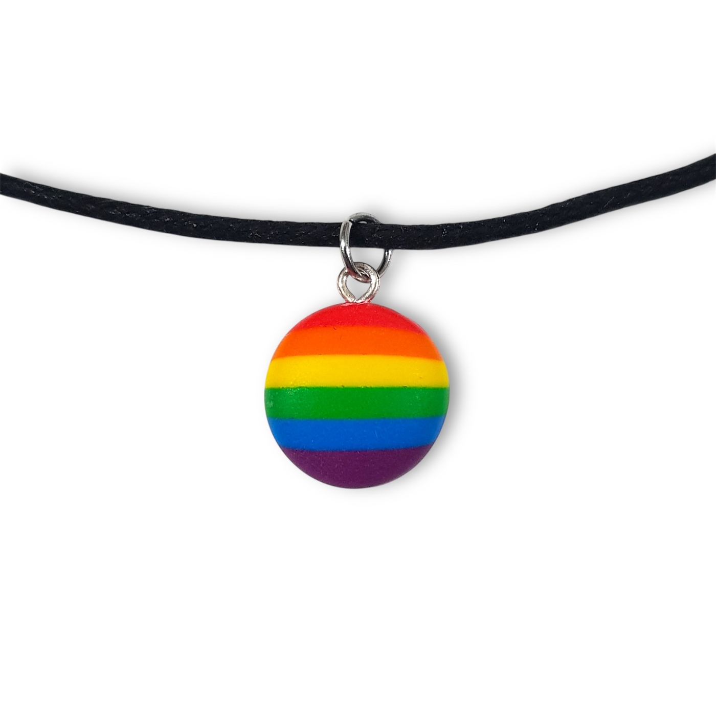 Pride flag necklace in the rainbow pride lgbtq flag colours of red, orange, yellow, green, blue, and indigo.