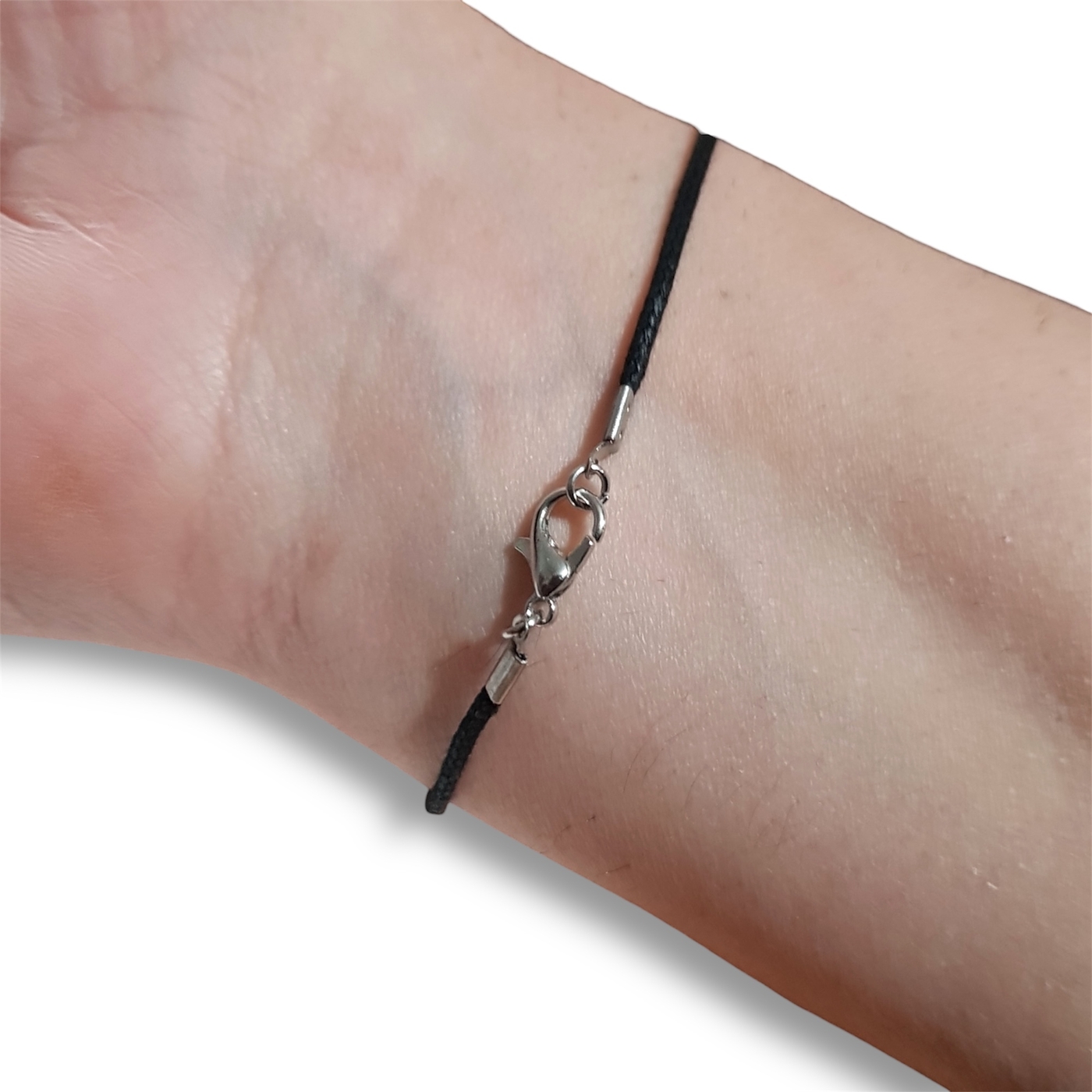 The beads are approximately 6mm in diameter and are handmade from polymer clay. The bracelet is made from 1.5mm waxed cotton, and closure is via a lobster clasp.