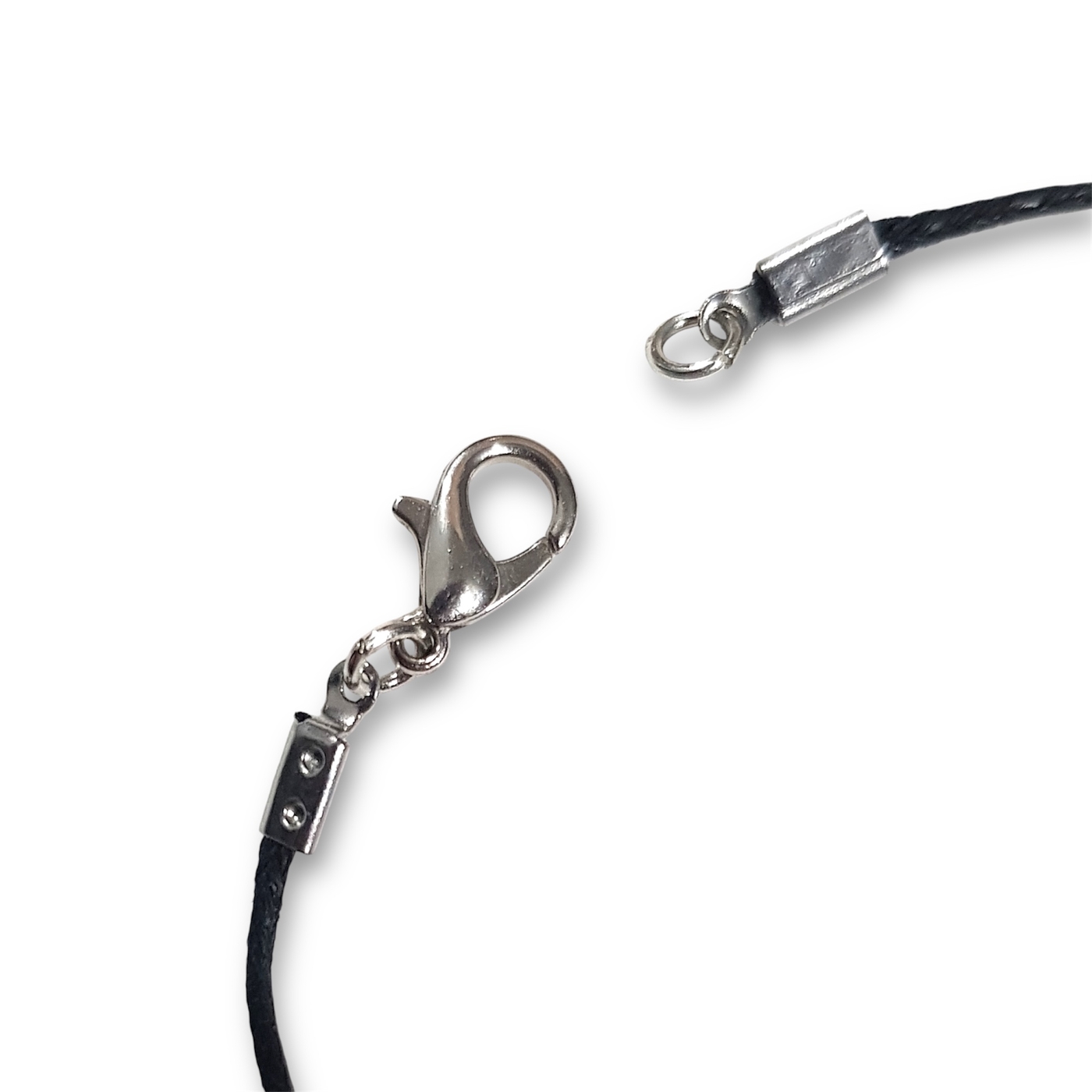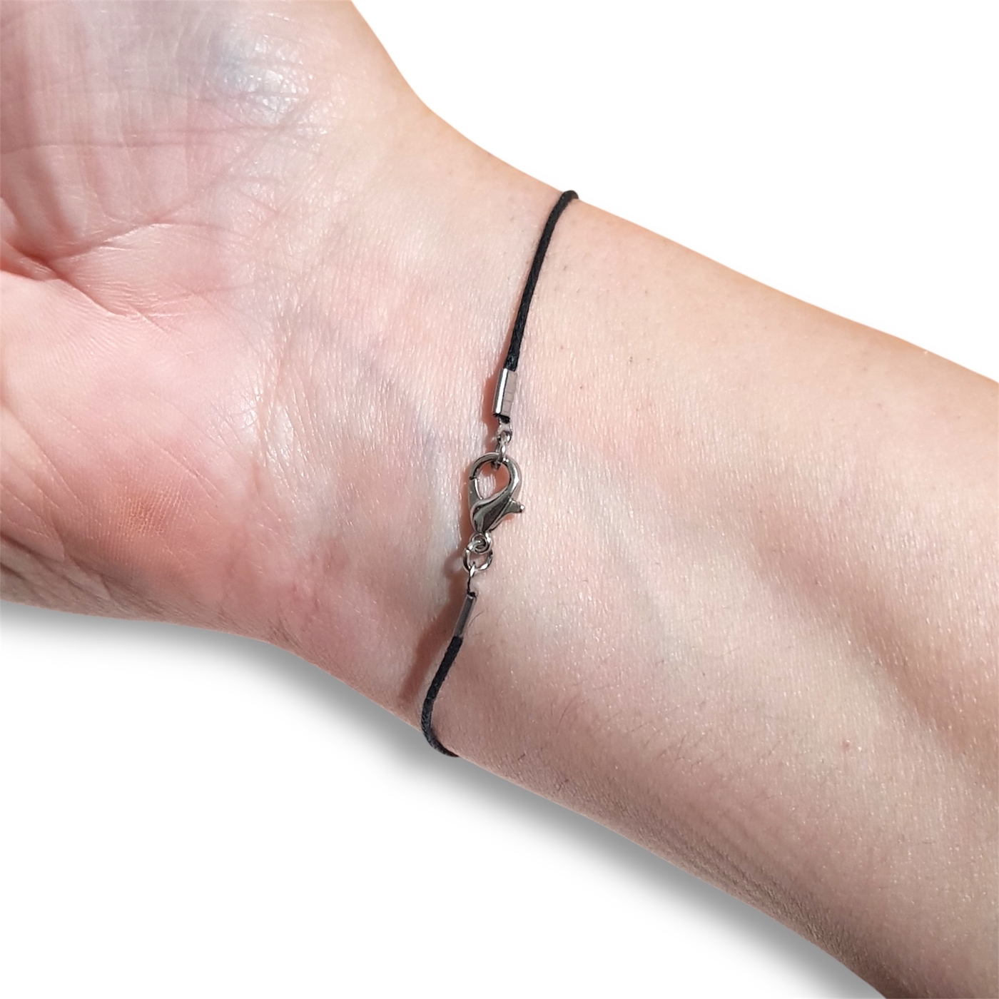 The beads are approximately 8mm in diameter and are handmade from polymer clay. The bracelet is made from 1mm waxed cotton, and closure is via a lobster clasp.