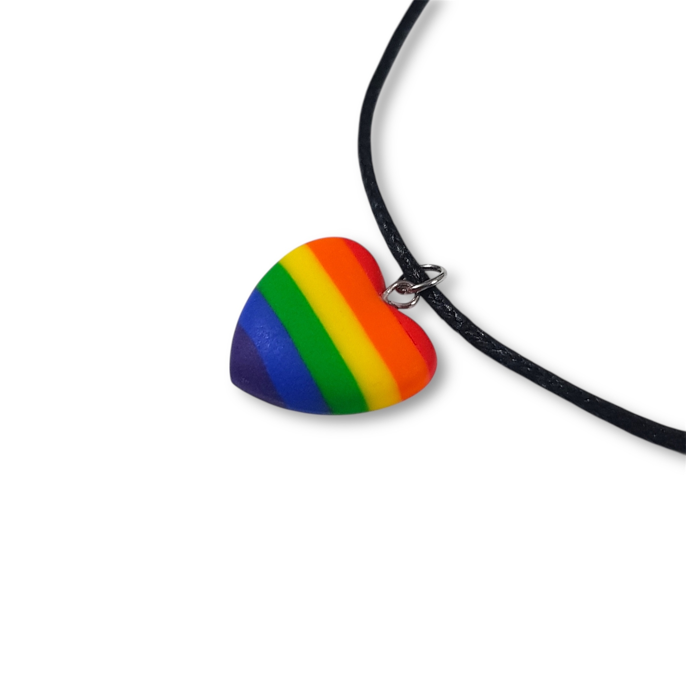Pride flag necklace in the rainbow pride lgbtq flag colours of red, orange, yellow, green, blue, and indigo.