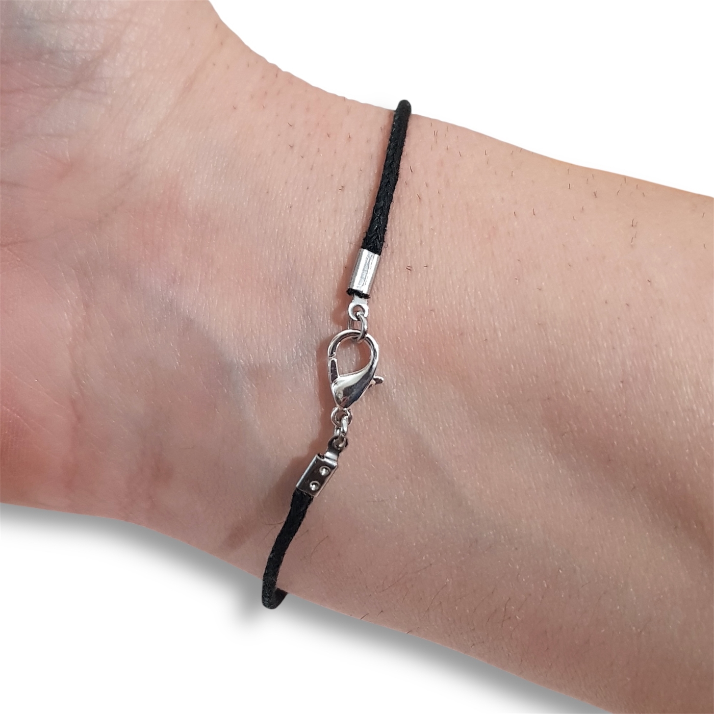 The beads are approximately 8mm in diameter and are handmade from polymer clay. The bracelet is made from 1.5mm waxed cotton, and closure is via a lobster clasp.